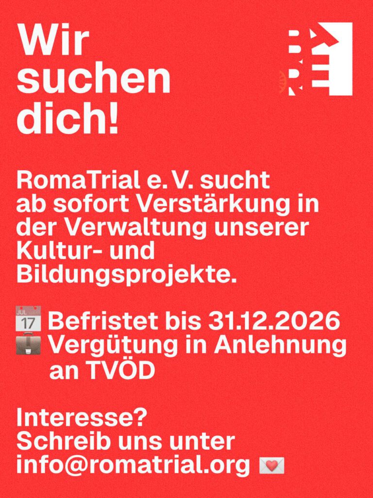 Hier sowie auf unseren Social Media Kanälen informieren wir über aktuelle Ausschreibungen und vakante Stellen bei BARE Berlin – Bündnis gegen Antiziganismus und für Roma*-Empowerment.